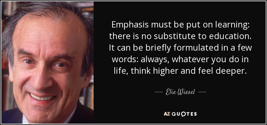 Emphasis must be put on learning: there is no substitute to education. It can be briefly formulated in a few words: always, whatever you do in life, think higher and feel deeper.