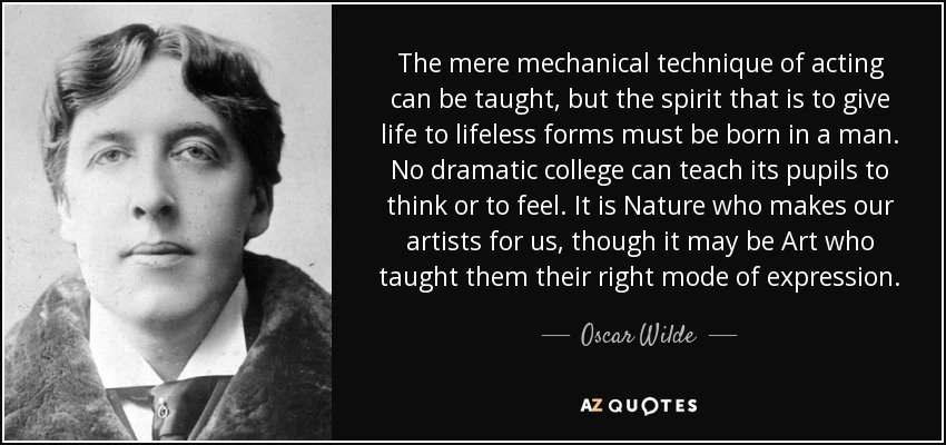 The mere mechanical technique of acting can be taught, but the spirit that is to give life to lifeless forms must be born in a man. No dramatic college can teach its pupils to think or to feel. It is Nature who makes our artists for us, though it may be Art who taught them their right mode of expression.