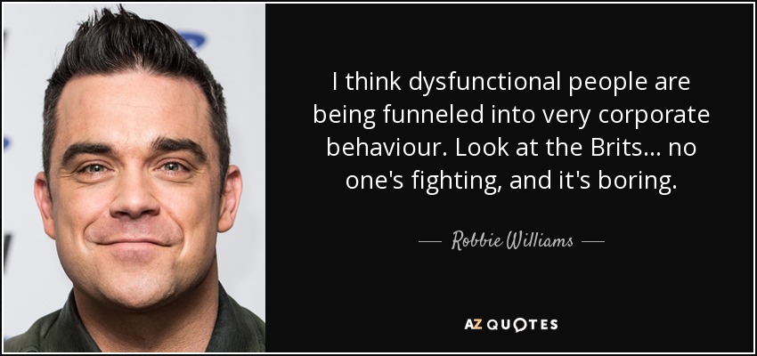 I think dysfunctional people are being funneled into very corporate behaviour. Look at the Brits... no one's fighting, and it's boring.
