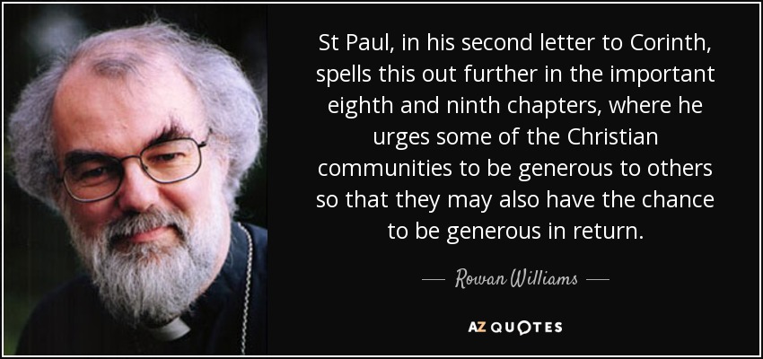 St Paul, in his second letter to Corinth, spells this out further in the important eighth and ninth chapters, where he urges some of the Christian communities to be generous to others so that they may also have the chance to be generous in return.