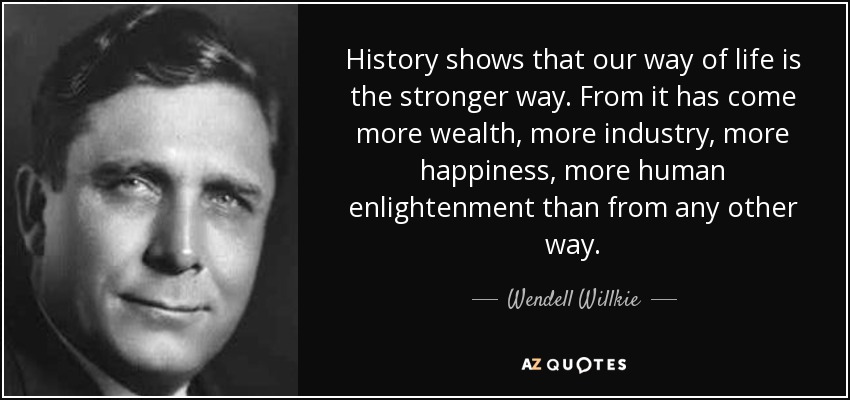 History shows that our way of life is the stronger way. From it has come more wealth, more industry, more happiness, more human enlightenment than from any other way.