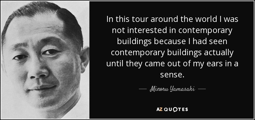 In this tour around the world I was not interested in contemporary buildings because I had seen contemporary buildings actually until they came out of my ears in a sense.
