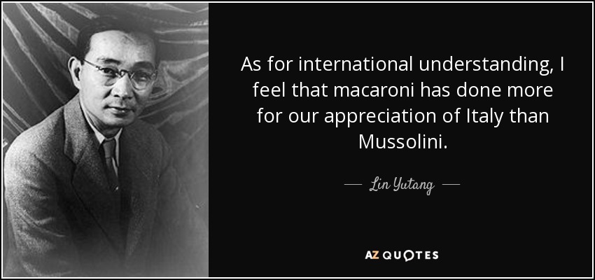 As for international understanding, I feel that macaroni has done more for our appreciation of Italy than Mussolini.