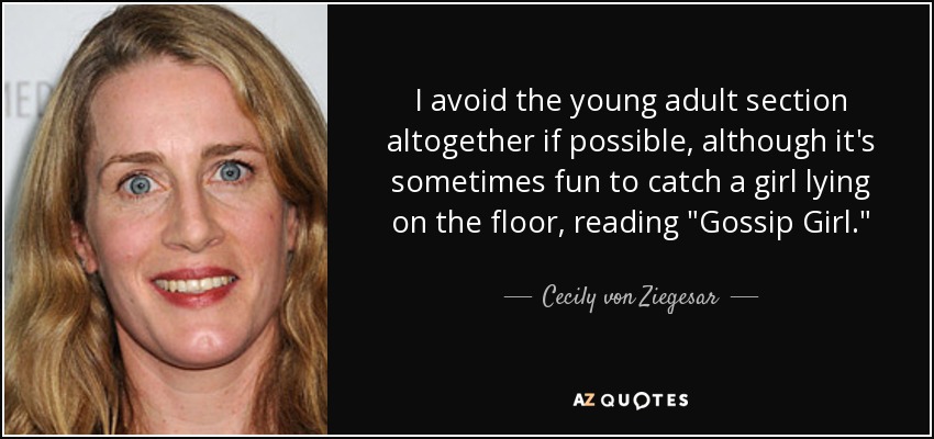 I avoid the young adult section altogether if possible, although it's sometimes fun to catch a girl lying on the floor, reading "Gossip Girl."