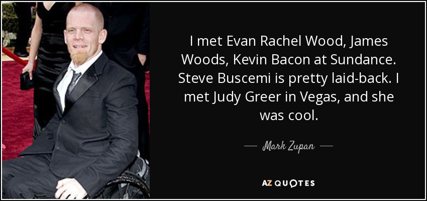 I met Evan Rachel Wood, James Woods, Kevin Bacon at Sundance. Steve Buscemi is pretty laid-back. I met Judy Greer in Vegas, and she was cool.