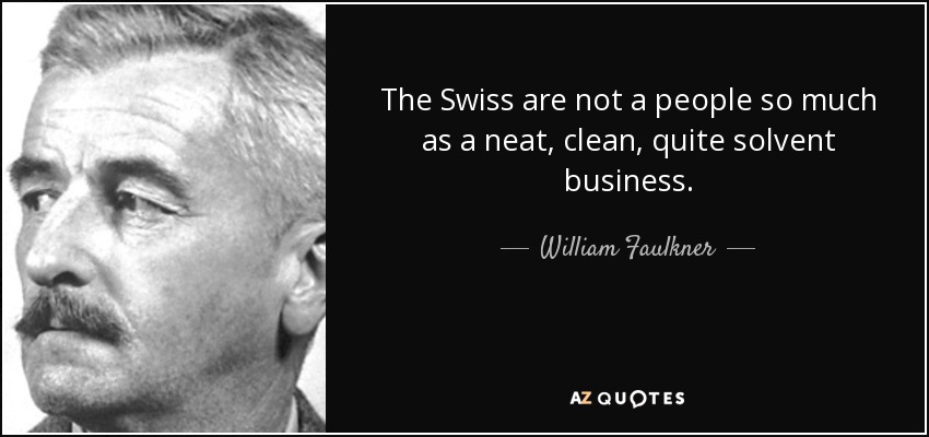 The Swiss are not a people so much as a neat, clean, quite solvent business.