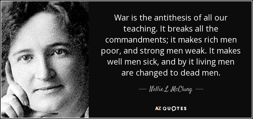 War is the antithesis of all our teaching. It breaks all the commandments; it makes rich men poor, and strong men weak. It makes well men sick, and by it living men are changed to dead men.
