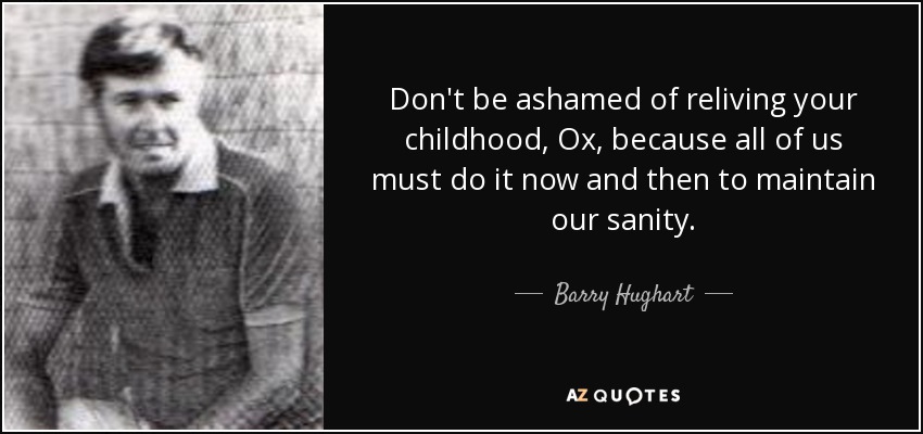 Don't be ashamed of reliving your childhood, Ox, because all of us must do it now and then to maintain our sanity.