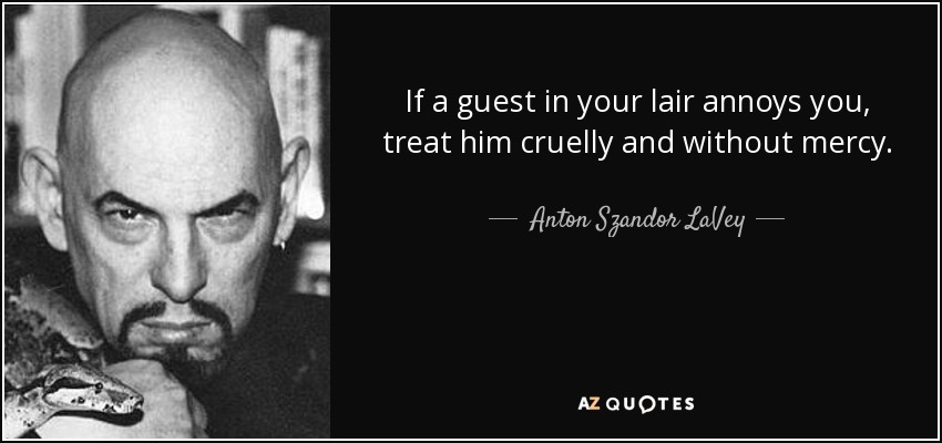 If a guest in your lair annoys you, treat him cruelly and without mercy.