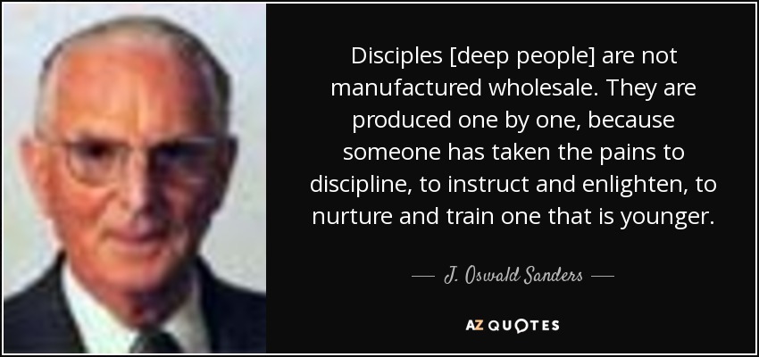 Disciples [deep people] are not manufactured wholesale. They are produced one by one, because someone has taken the pains to discipline, to instruct and enlighten, to nurture and train one that is younger.