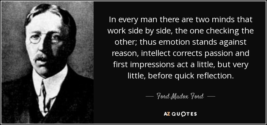 In every man there are two minds that work side by side, the one checking the other; thus emotion stands against reason, intellect corrects passion and first impressions act a little, but very little, before quick reflection.