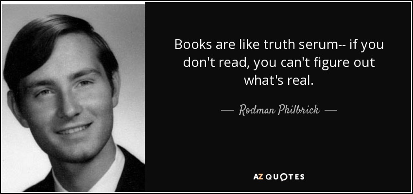 Books are like truth serum-- if you don't read, you can't figure out what's real.