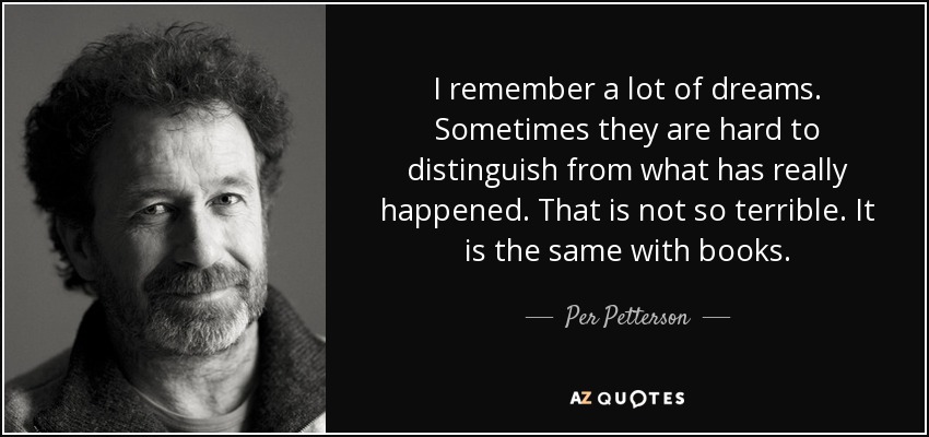 I remember a lot of dreams. Sometimes they are hard to distinguish from what has really happened. That is not so terrible. It is the same with books.