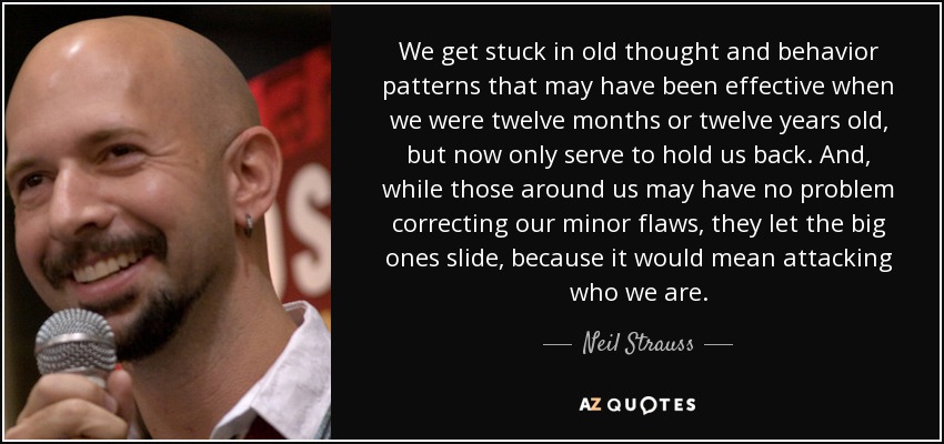 We get stuck in old thought and behavior patterns that may have been effective when we were twelve months or twelve years old, but now only serve to hold us back. And, while those around us may have no problem correcting our minor flaws, they let the big ones slide, because it would mean attacking who we are.