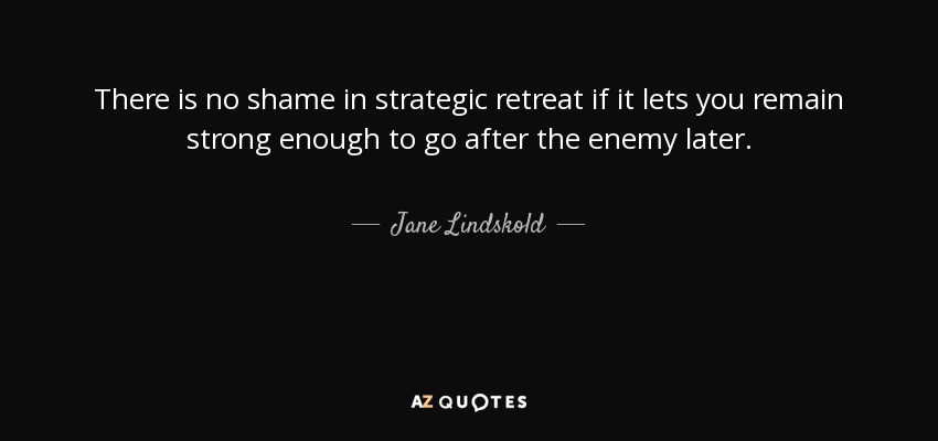 There is no shame in strategic retreat if it lets you remain strong enough to go after the enemy later.