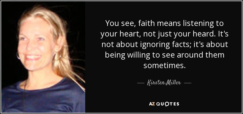 You see, faith means listening to your heart, not just your heard. It's not about ignoring facts; it's about being willing to see around them sometimes.