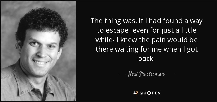 The thing was, if I had found a way to escape- even for just a little while- I knew the pain would be there waiting for me when I got back.