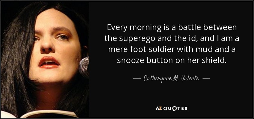 Every morning is a battle between the superego and the id, and I am a mere foot soldier with mud and a snooze button on her shield.
