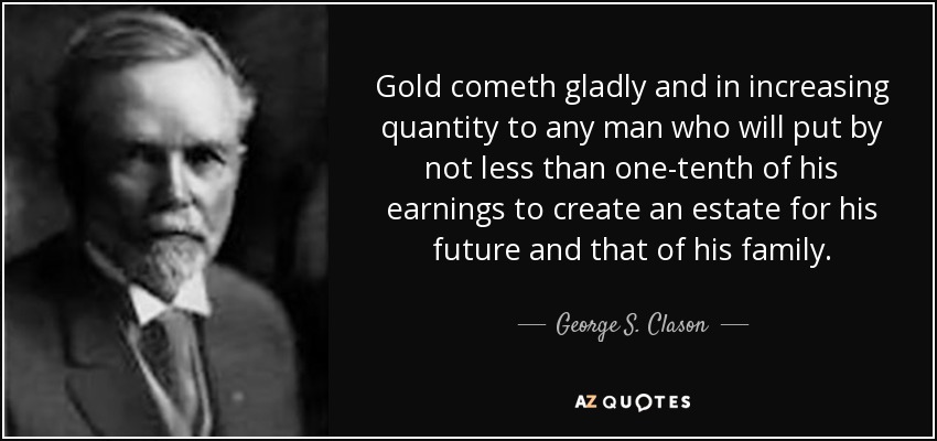 Gold cometh gladly and in increasing quantity to any man who will put by not less than one-tenth of his earnings to create an estate for his future and that of his family.