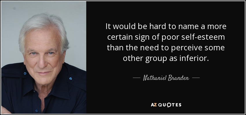 It would be hard to name a more certain sign of poor self-esteem than the need to perceive some other group as inferior.