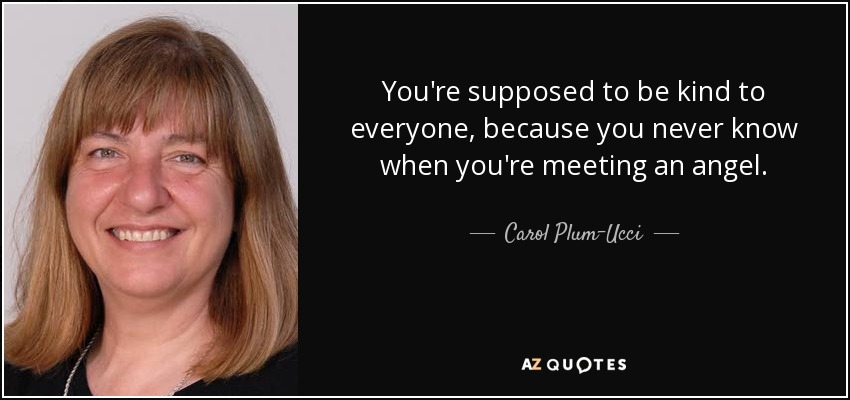 You're supposed to be kind to everyone, because you never know when you're meeting an angel.