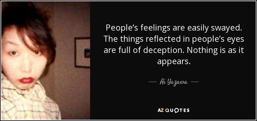 People’s feelings are easily swayed. The things reflected in people’s eyes are full of deception. Nothing is as it appears.