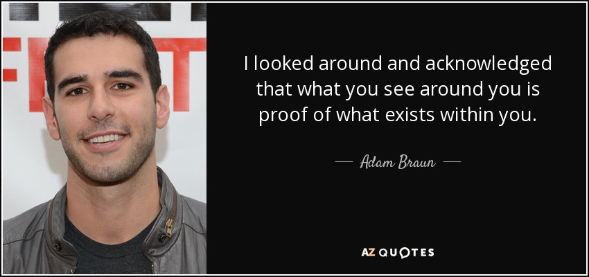 I looked around and acknowledged that what you see around you is proof of what exists within you.