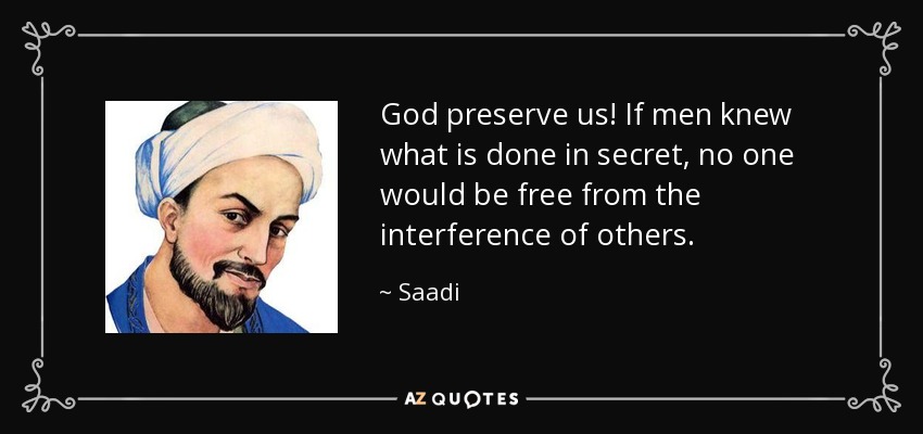 God preserve us! If men knew what is done in secret, no one would be free from the interference of others.