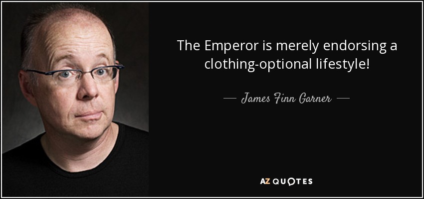 The emperor is naked!" The parade stopped. The emperor paused. A hush fell over the crowd, until one quick-thinking peasant shouted: "No, he isn't. The emperor is merely endorsing a clothing-optional lifestyle!