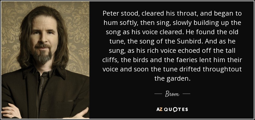 Peter stood, cleared his throat, and began to hum softly, then sing, slowly building up the song as his voice cleared. He found the old tune, the song of the Sunbird. And as he sung, as his rich voice echoed off the tall cliffs, the birds and the faeries lent him their voice and soon the tune drifted throughtout the garden.