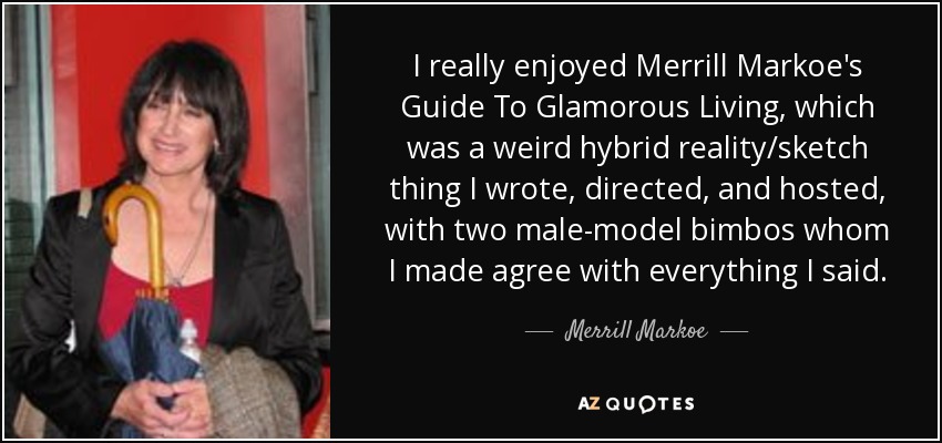 I really enjoyed Merrill Markoe's Guide To Glamorous Living, which was a weird hybrid reality/sketch thing I wrote, directed, and hosted, with two male-model bimbos whom I made agree with everything I said.