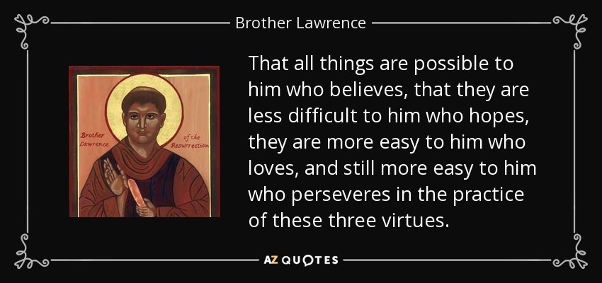 Brother Lawrence (of the Resurrection), Joseph de Beaufort (1874). “Brother Lawrence: The Practice of the Presence of God the Best Rule of a Holy Life, Being Conversations and Letters of Nicholas Herman of Lorraine (Brother Lawrence).”, p.62, New York ; Chicago ; Toronto : F.H. Revell