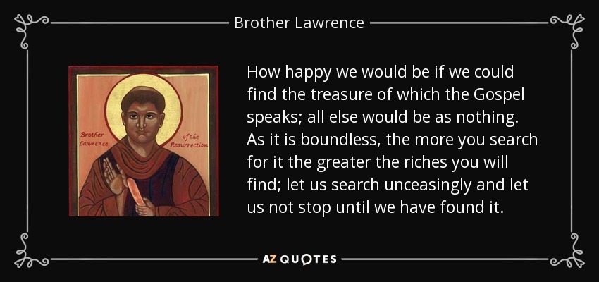 How happy we would be if we could find the treasure of which the Gospel speaks; all else would be as nothing. As it is boundless, the more you search for it the greater the riches you will find; let us search unceasingly and let us not stop until we have found it.
