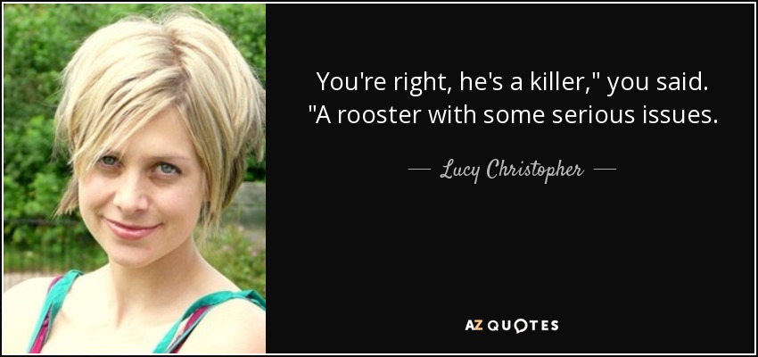 You're right, he's a killer," you said. "A rooster with some serious issues.
