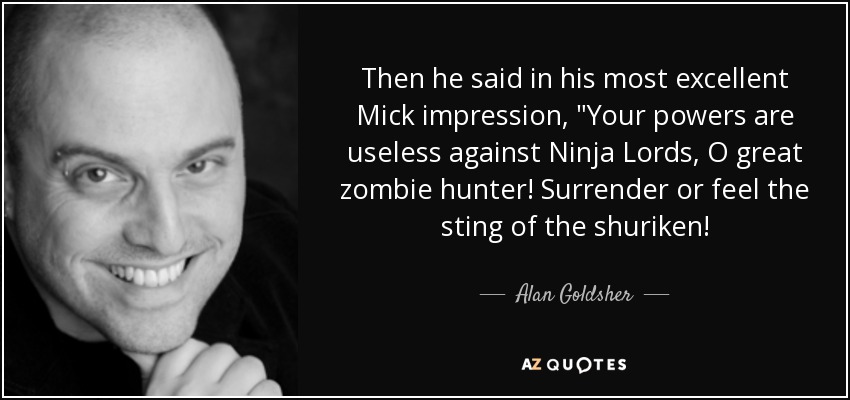 Then he said in his most excellent Mick impression, "Your powers are useless against Ninja Lords, O great zombie hunter! Surrender or feel the sting of the shuriken!