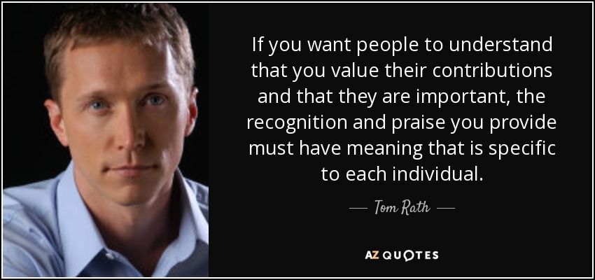 If you want people to understand that you value their contributions and that they are important, the recognition and praise you provide must have meaning that is specific to each individual.