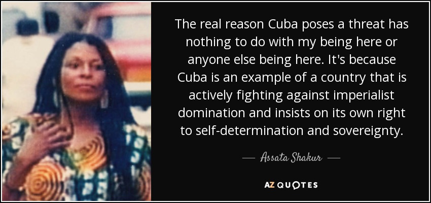 The real reason Cuba poses a threat has nothing to do with my being here or anyone else being here. It's because Cuba is an example of a country that is actively fighting against imperialist domination and insists on its own right to self-determination and sovereignty.