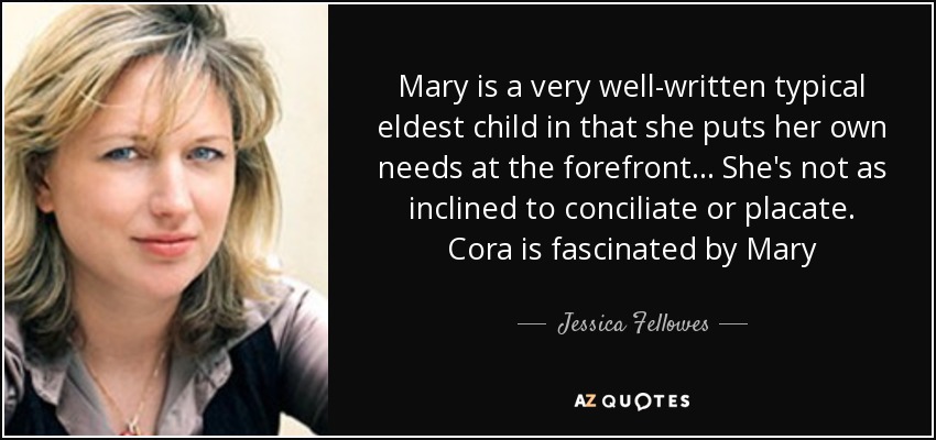 Mary is a very well-written typical eldest child in that she puts her own needs at the forefront... She's not as inclined to conciliate or placate. Cora is fascinated by Mary
