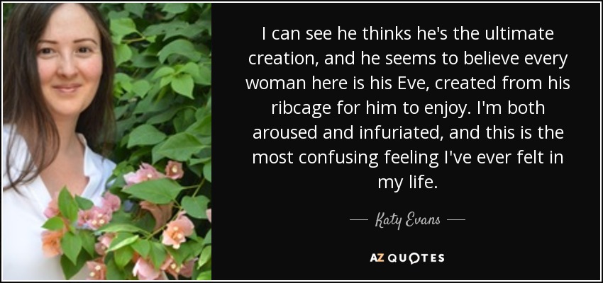 I can see he thinks he's the ultimate creation, and he seems to believe every woman here is his Eve, created from his ribcage for him to enjoy. I'm both aroused and infuriated, and this is the most confusing feeling I've ever felt in my life.