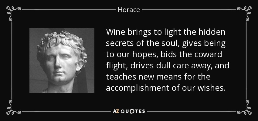 Wine brings to light the hidden secrets of the soul, gives being to our hopes, bids the coward flight, drives dull care away, and teaches new means for the accomplishment of our wishes.