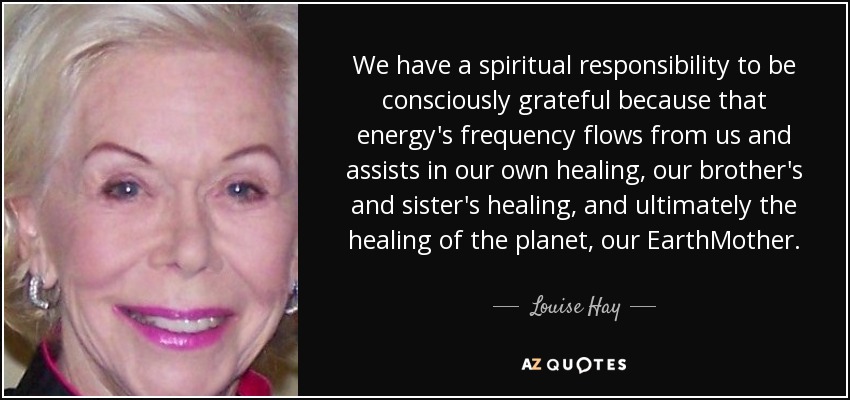 We have a spiritual responsibility to be consciously grateful because that energy's frequency flows from us and assists in our own healing, our brother's and sister's healing, and ultimately the healing of the planet, our EarthMother.