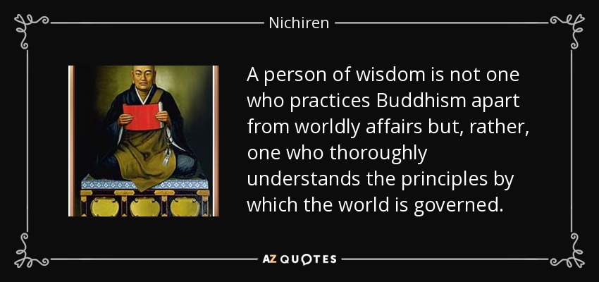A person of wisdom is not one who practices Buddhism apart from worldly affairs but, rather, one who thoroughly understands the principles by which the world is governed.