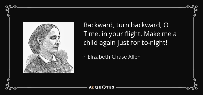 Backward, turn backward, O Time, in your flight, Make me a child again just for to-night!