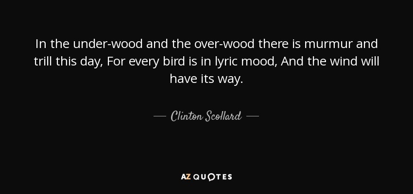 In the under-wood and the over-wood there is murmur and trill this day, For every bird is in lyric mood, And the wind will have its way.