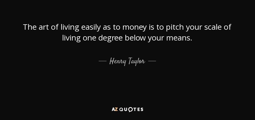 The art of living easily as to money is to pitch your scale of living one degree below your means.