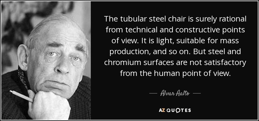 The tubular steel chair is surely rational from technical and constructive points of view. It is light, suitable for mass production, and so on. But steel and chromium surfaces are not satisfactory from the human point of view.