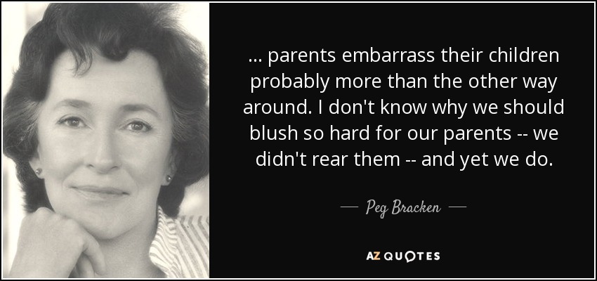 ... parents embarrass their children probably more than the other way around. I don't know why we should blush so hard for our parents -- we didn't rear them -- and yet we do.