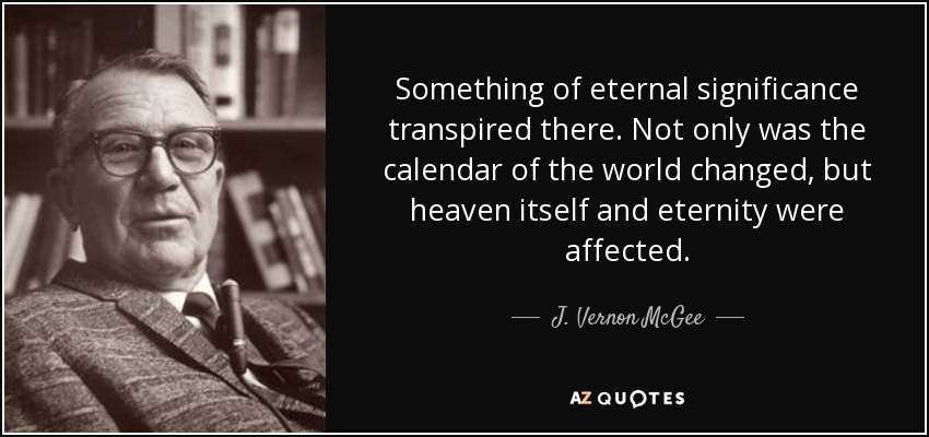 Something of eternal significance transpired there. Not only was the calendar of the world changed, but heaven itself and eternity were affected.