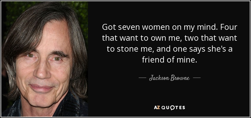 Got seven women on my mind. Four that want to own me, two that want to stone me, and one says she's a friend of mine.
