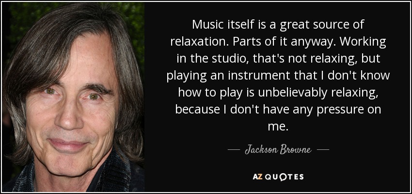 Music itself is a great source of relaxation. Parts of it anyway. Working in the studio, that's not relaxing, but playing an instrument that I don't know how to play is unbelievably relaxing, because I don't have any pressure on me.